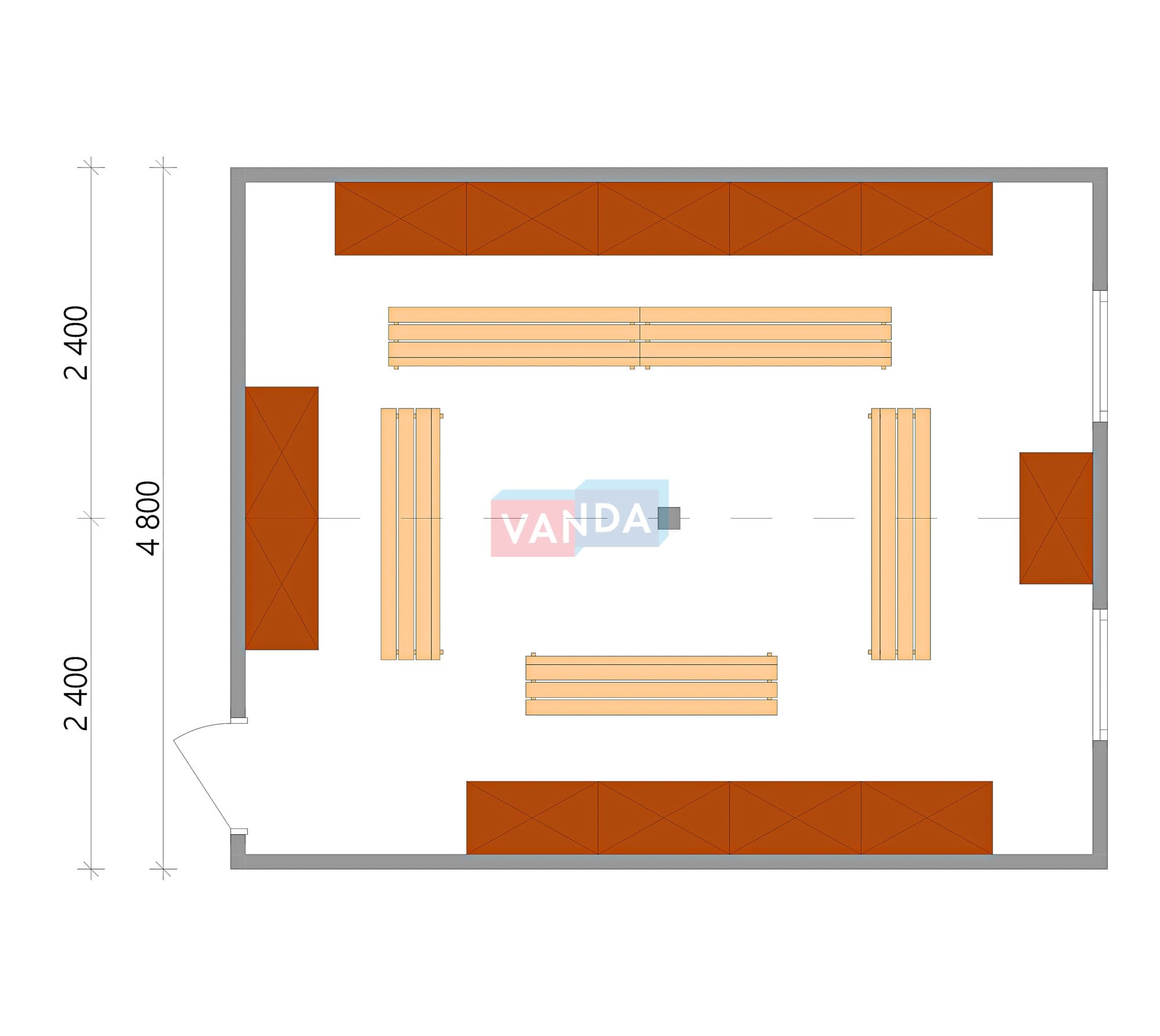 Проект модульной раздевалки 6.0х4,8 без тамбура
